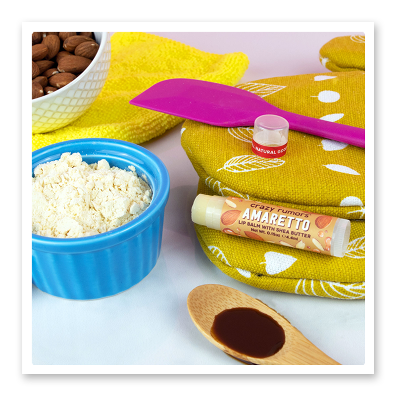 Macadamia Ternifolia (Macadamia) Seed Oil,Olea Europaea (Organic Olive) Fruit Oil, Butyrospermum Parkii (Organic Shea) Butter, Euphorbia Cerifera (Candelilla) Wax, Glycine Soja (Non GMO Soybean) Wax, Simmondsia Chinensis (Jojoba) Seed Oil, Copernicia Cerifera (Organic Carnauba) Wax, Aroma (Natural Flavors), Tocopherol (Vit E) & Eupatorium Rebaudianum Bertoni (Stevia)