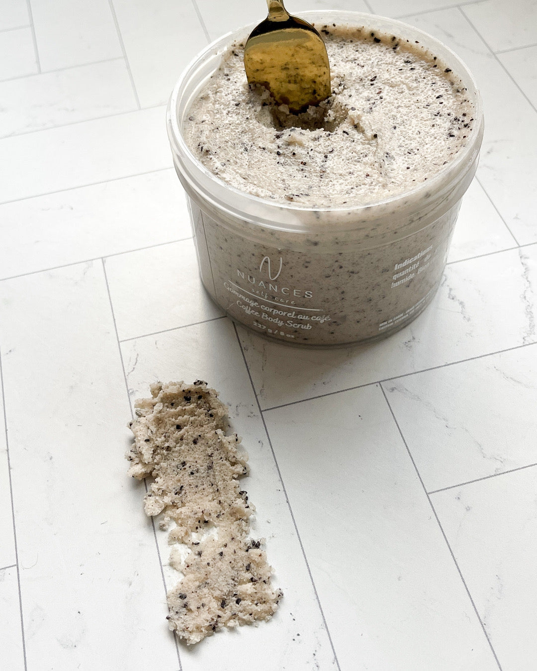 An indulgent and rich body scrub with a lovely whipped consistency. The Coffee Body Scrub is a highly moisturizing blend of sugar, sunflower oil, and coffee grounds that will leave you feeling soft and energized!