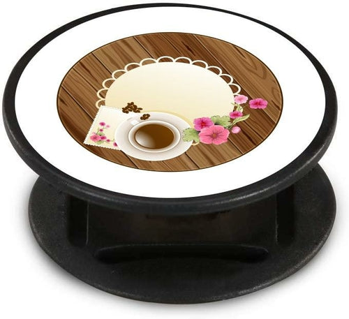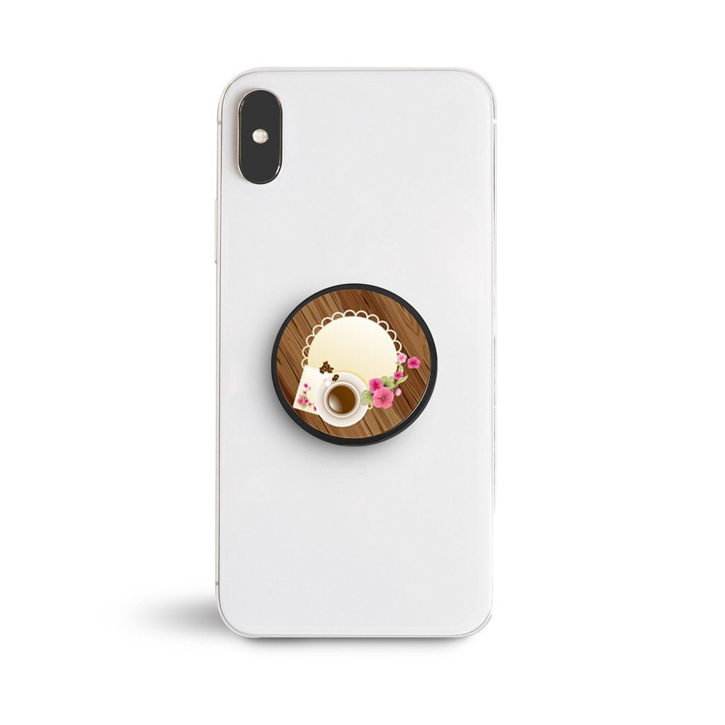 Coffee doesn't have to be bold. This coffee themed nuckees shows off the more elegant side of coffee. A dainty doily and flowers provide the idea of a simple quiet cup of morning coffee on this phone grip.