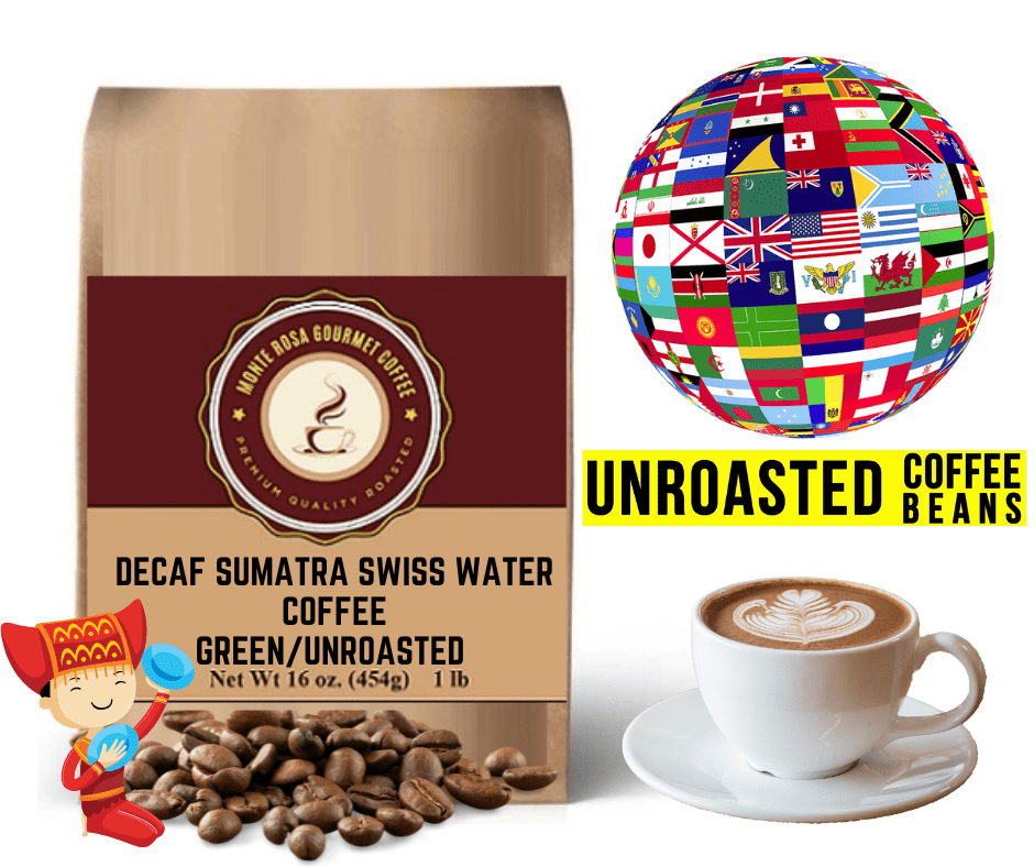 This Sumatra Mandheling Gourmet Coffee has been decaffeinated through a chemical-free method known as the Swiss Water Method. Green coffee beans are washed and soaked in water to remove the caffeine. The water is then filtered to remove the caffeine, and the beans are soaked again and again until they are 99.9% caffeine-free. only available in decaf