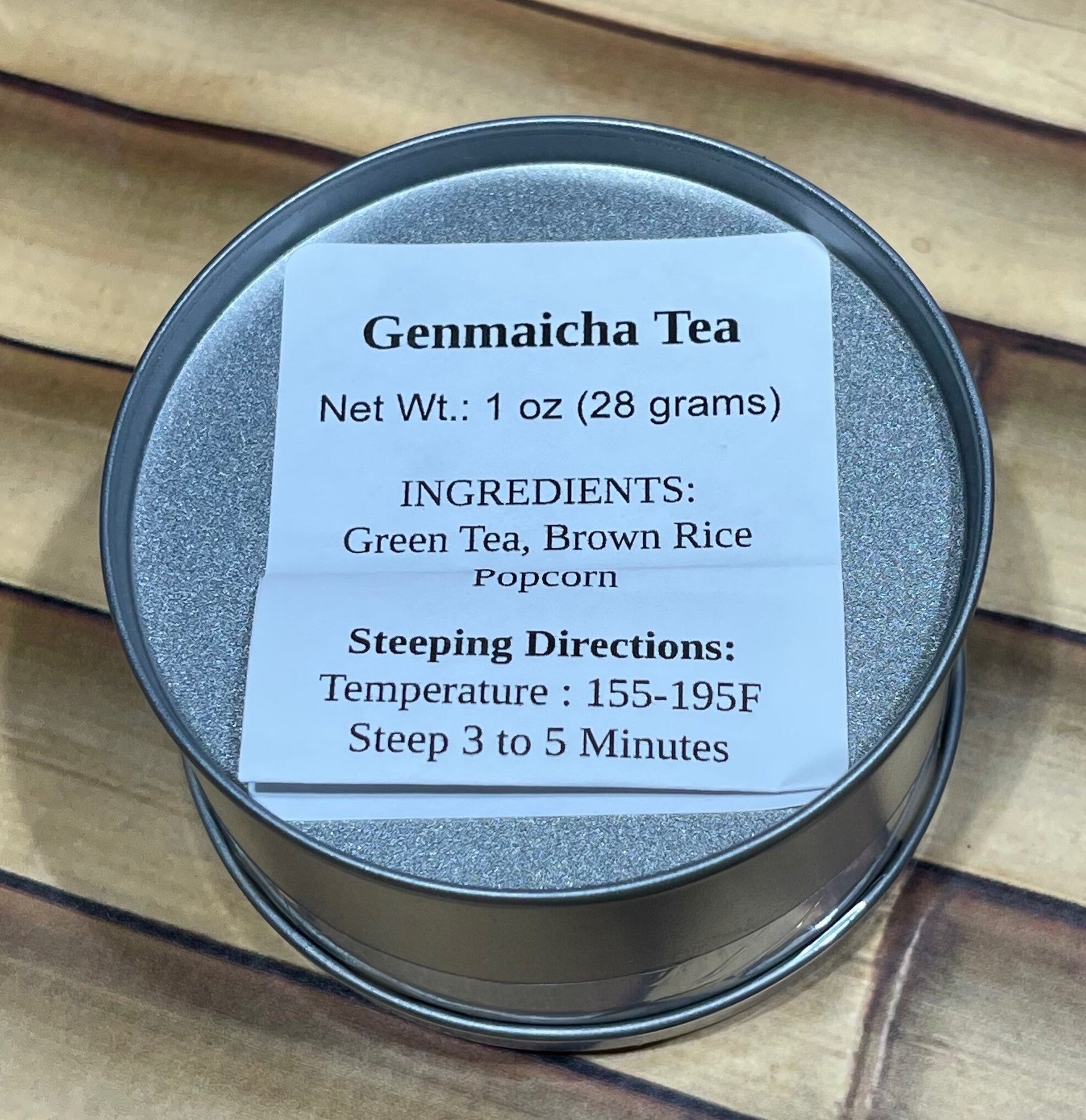 Genmaicha Tea Green Sencha with Popcorn and Rice. This traditional Japanese tea blends green tea with brown rice and popcorn and to us they symbolize Amelia's playfulness, grace, curiosity, sense of adventure and beauty. Caffeine- Yes, it grows out of the ground that way. Non GMO Fair Trade Compliant Sustainably Sourced Gluten Free PREPARATION: Place 1 heaping teaspoon of loose leaf tea per 6 oz of hot to boiling water into an infuser or filter. Allow tea to steep for 3 to 5 minutes, remove infuser/filter with leaves and enjoy.