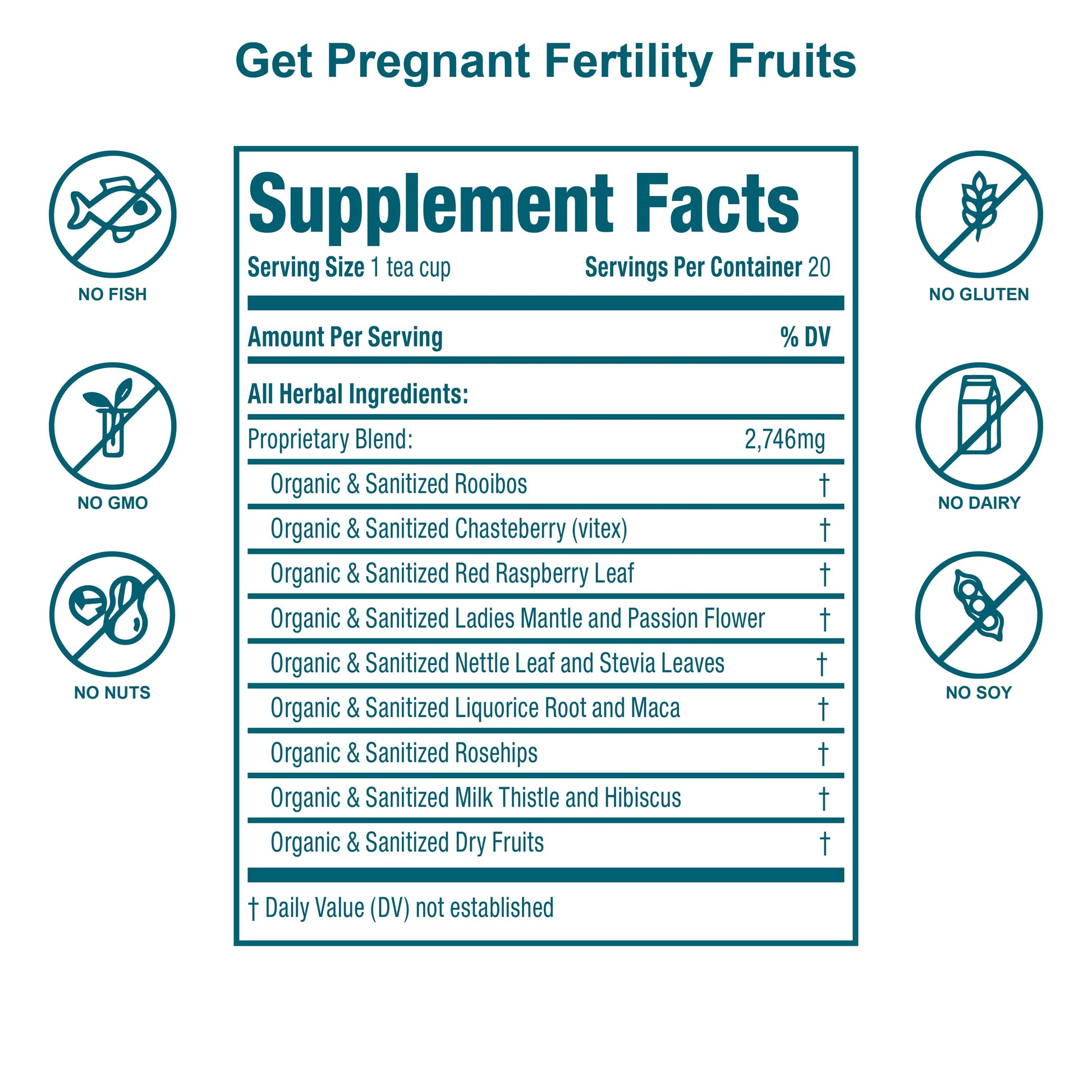 Starting your pregnancy journey is a big step. Get Pregnant Fertility Fruit Tea helps support a normal cycle, hormone levels, and overall women’s wellness. Get Pregnant Tea contains herbs recommended to support fertility. Our Fertility Tea is a relaxing blend and very delicious and most women will drink it as part of their daily routine.