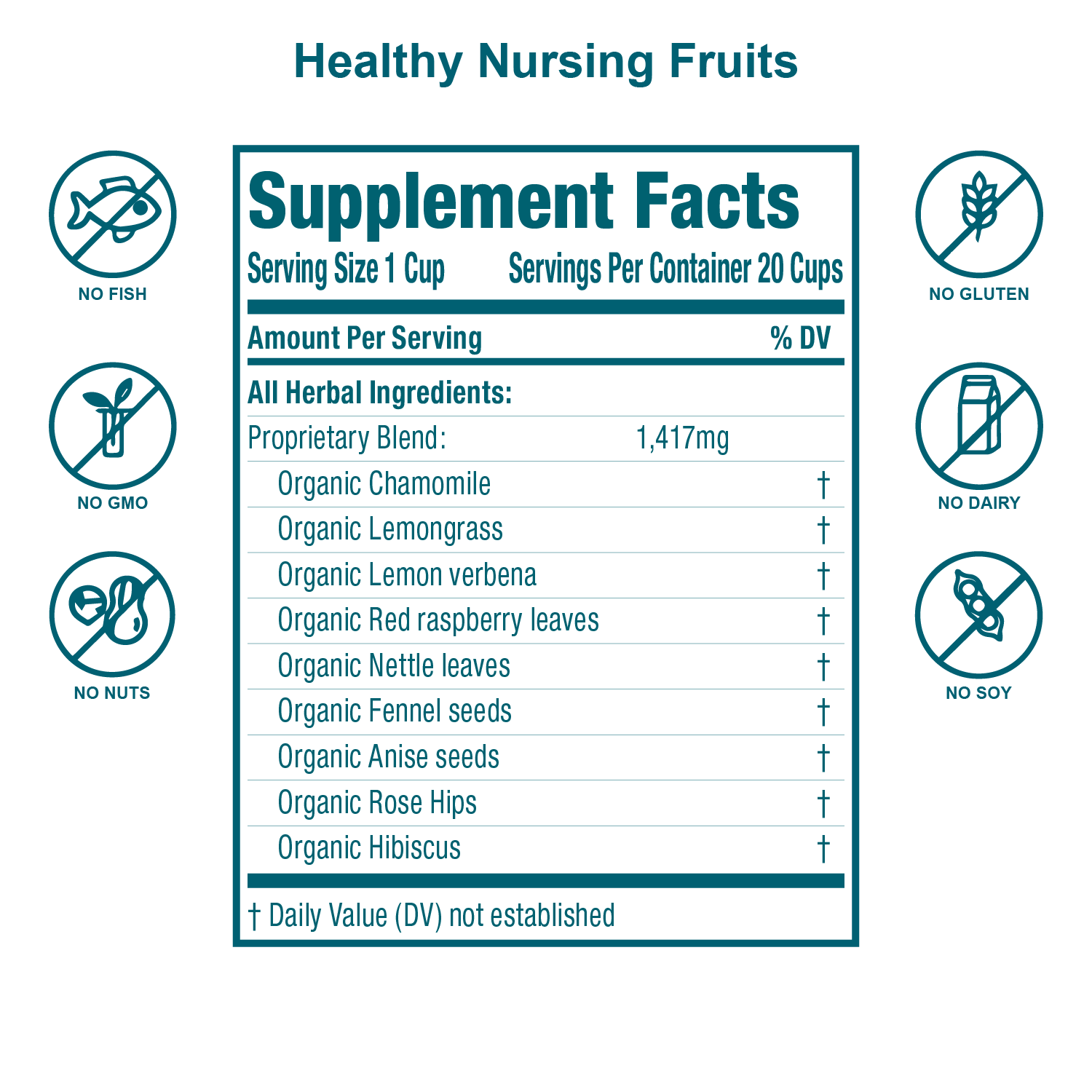 Chamomile, Blessed Thistle, Lemongrass, Milk Thistle, Lemon verbena, Red raspberry leaves, Nettle leaf, Fruits, Fennel seeds, Anise seeds, Rose Hips, HibiscusDirections: