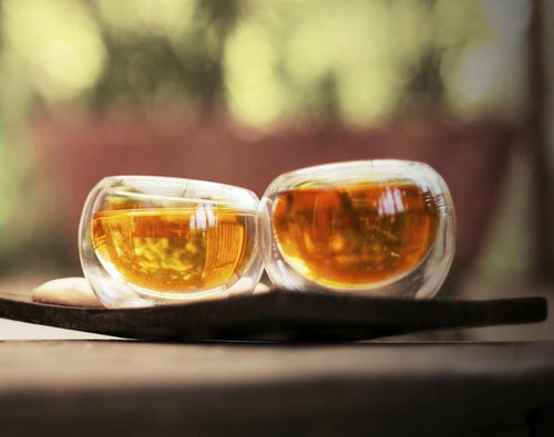 The Kettlery's sturdy glass kava tea cups have a timeless appeal. Thoughtfully designed for aesthetic, convenience and function the layered glass of the double walled kava cup creates an illusion of floating liquid and keeps your hands cool. Small in size they fit right in the palm of your hands.