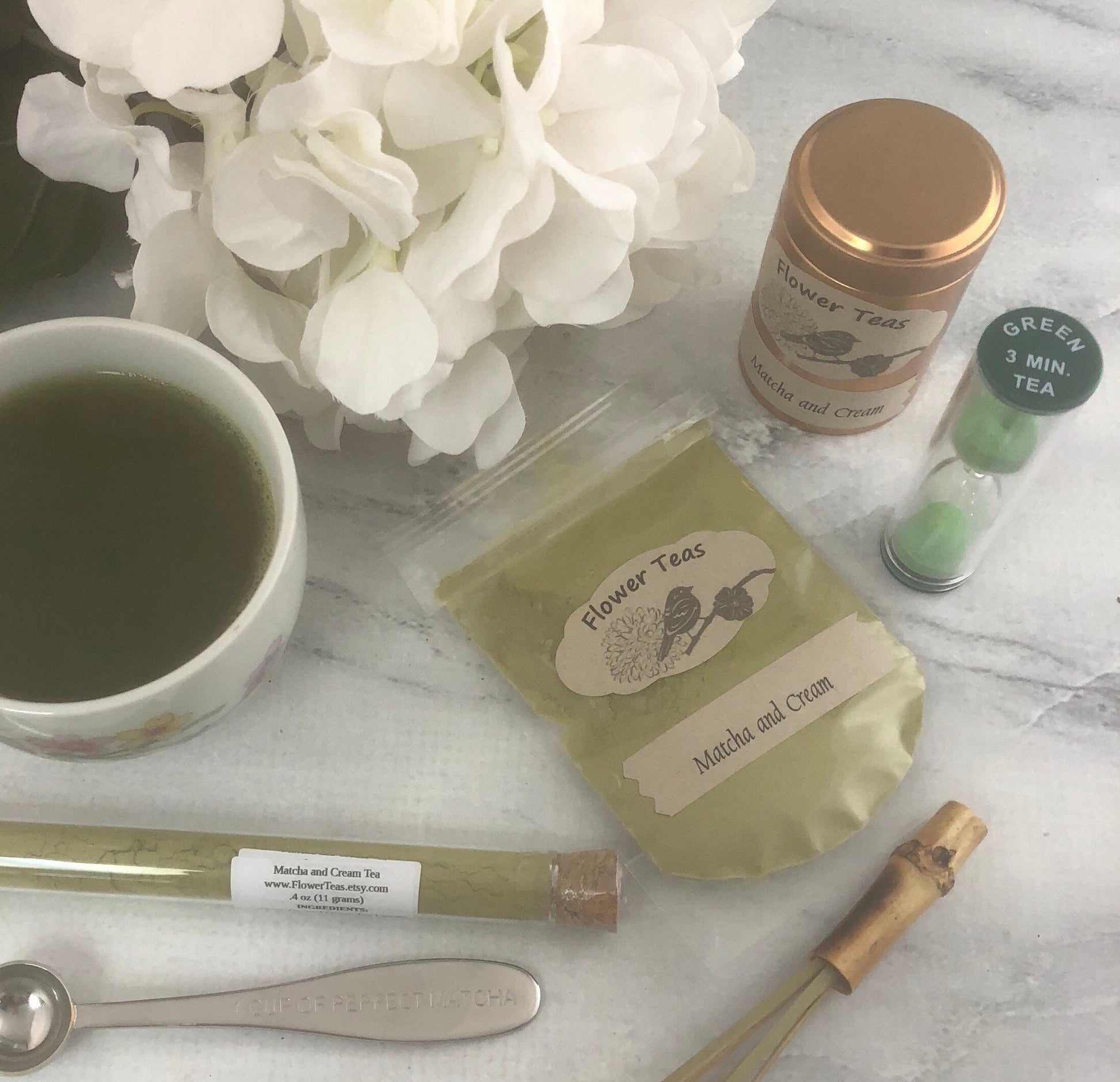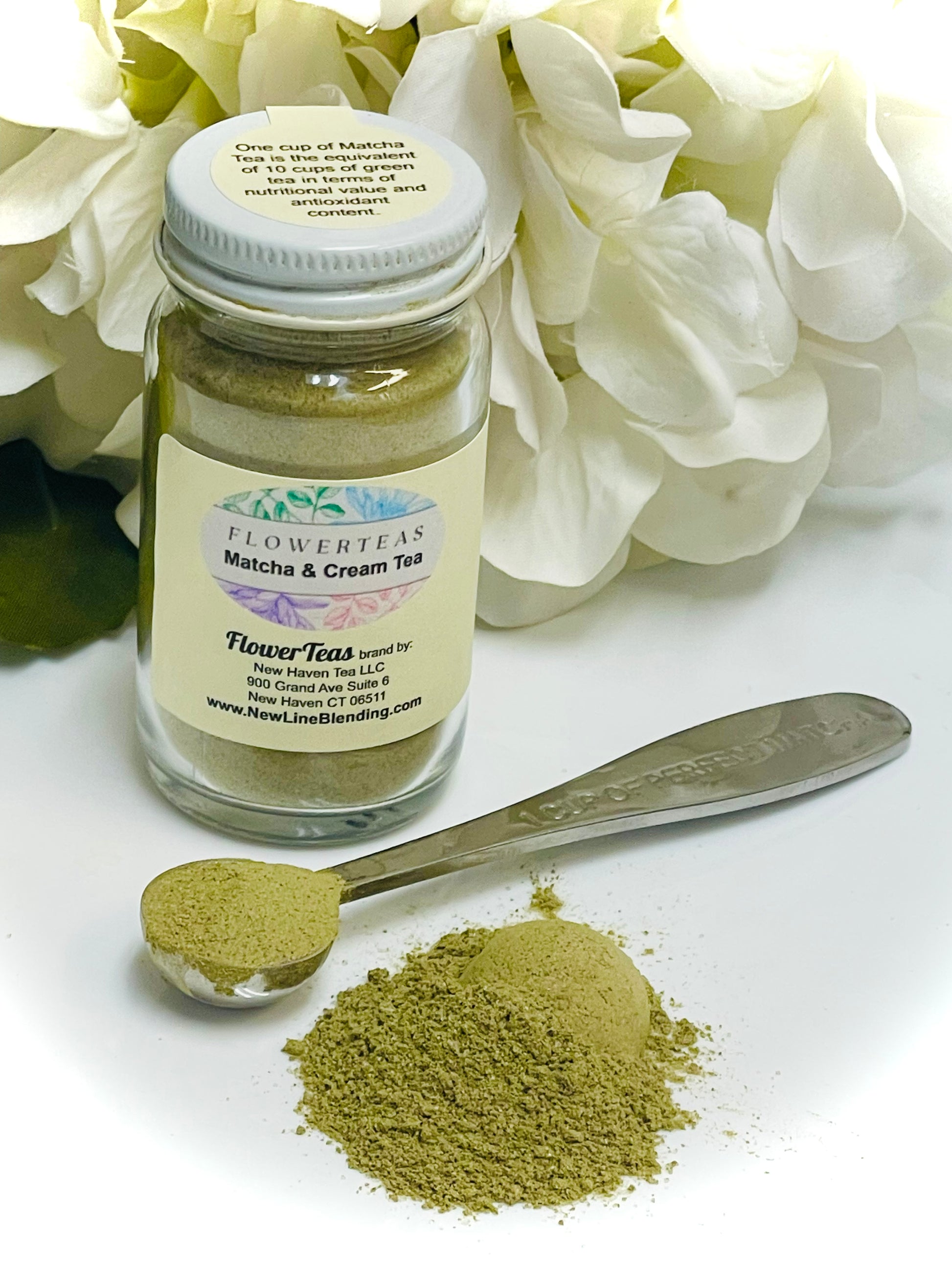 Matcha and Cream Tea is available in a glass jar with metal lid, a pouch and a set of two test tubes.
