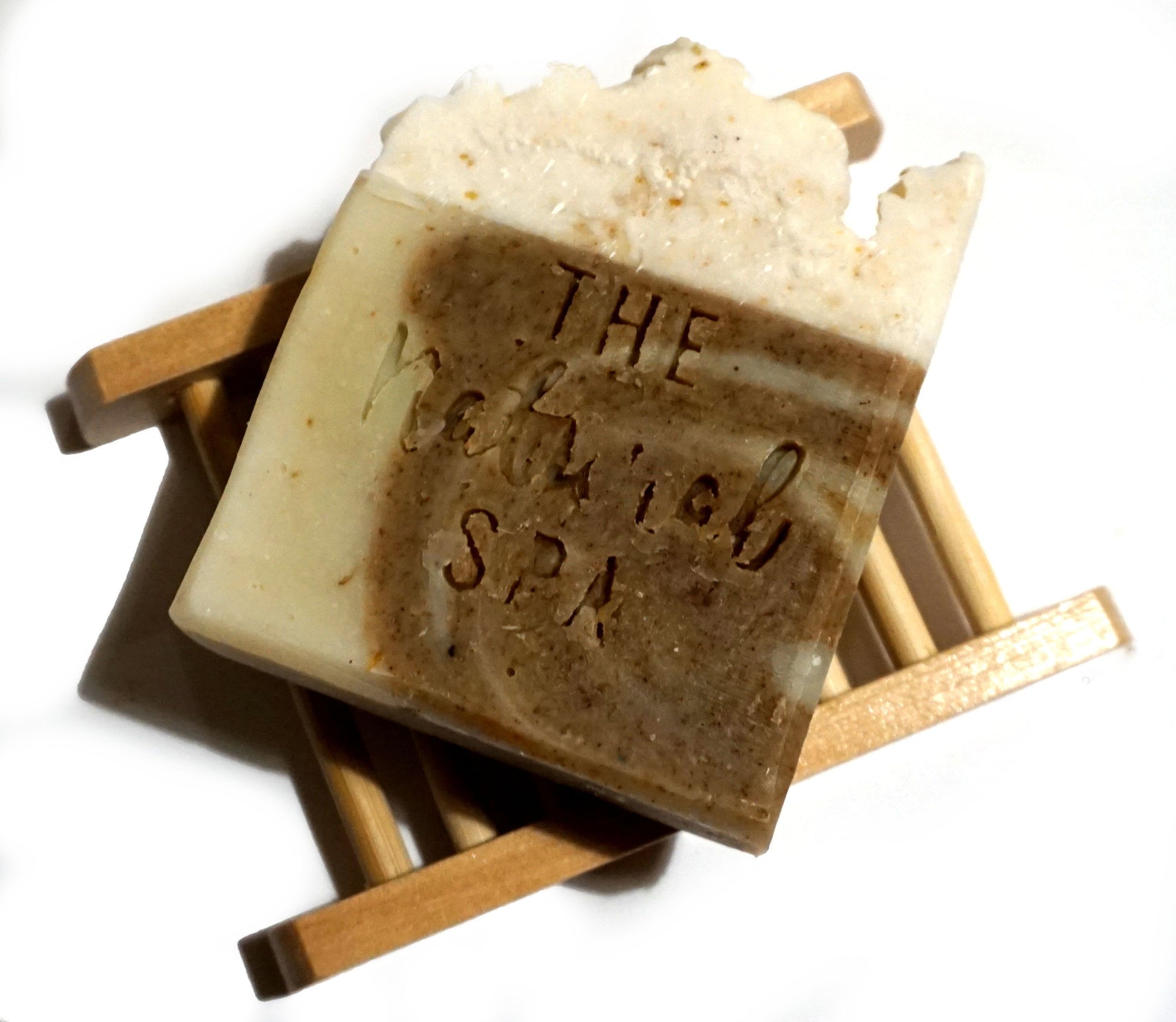 This Luxury soap bar brought to you by the Natural Spa has been lovingly made with our signature soap recipe containing skin loving oils. The formulation is designed to create a generous lather whilst being gentle on the skin. The simple yet eye-catching design makes this ideal to have in your bathroom or perfect for a gift. The scent is a blend of Peppermint and Lavender and the colours are a mix of Green tea and Spirulina.