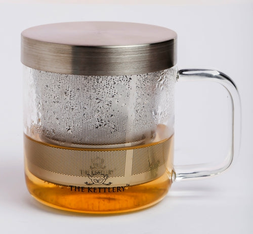 The Milano Glass Cup integrated with stainless steel infuser and lid is your perfect office tea companion. The Milano Glass cups unique tea filters provide a very clean and hassle free loose leaf tea brewing experience.