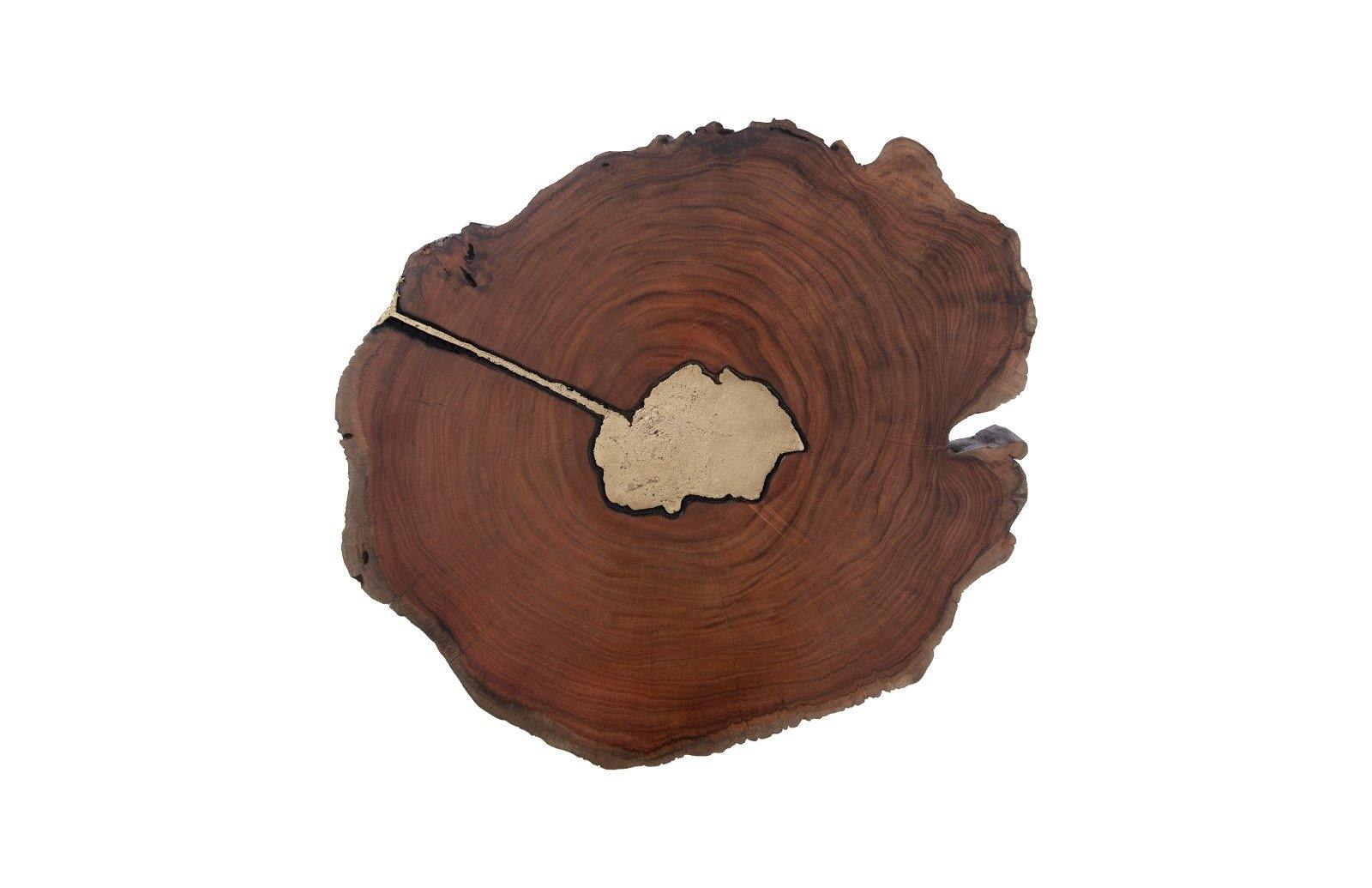 This piece is crafted with natural solid wood. Color and character of wood grain may vary and natural cracking will result in the brass fill pattern to differ from piece to piece.