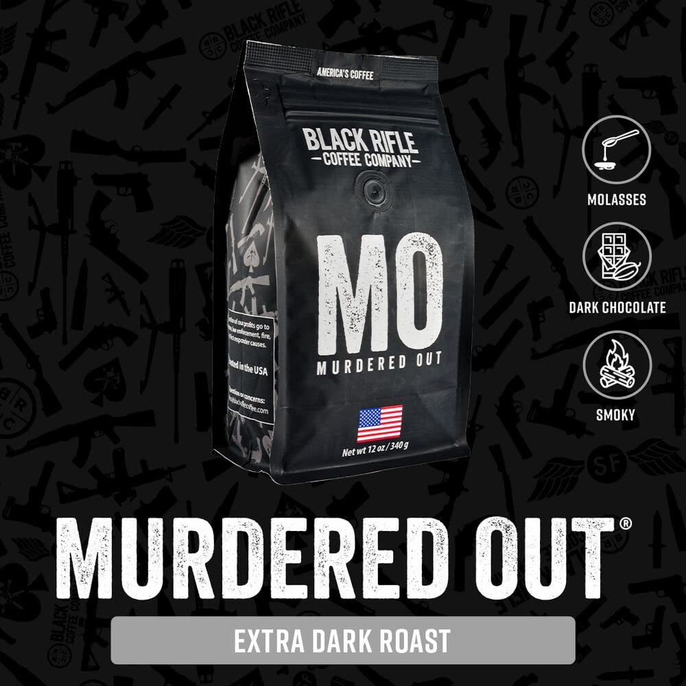 - Includes: One 12 oz bag of Black Rifle Coffee Company Murdered Out ground extra dark roast coffee