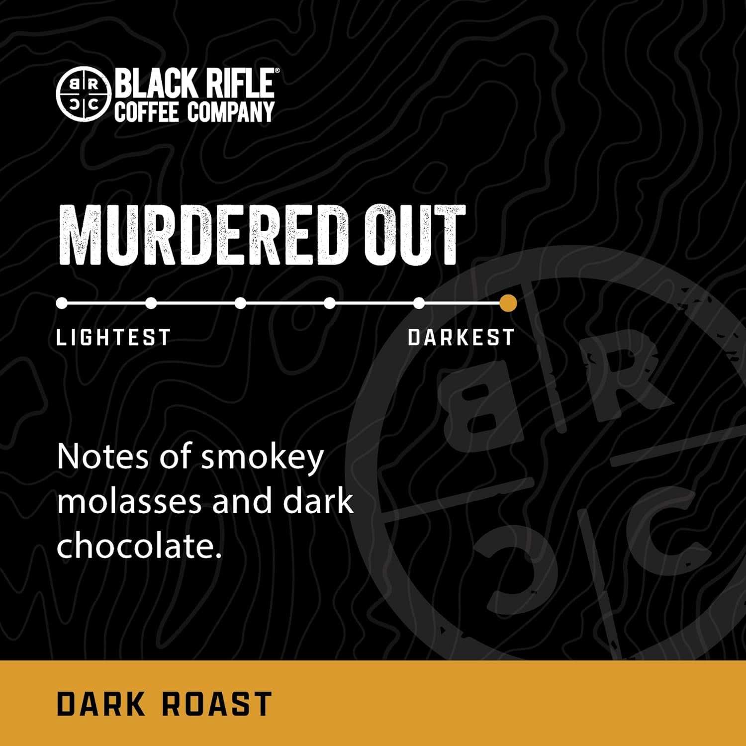 - Extra Dark Roast: BRCC’s darkest roast, Murdered Out features a bold, smoky aroma with smoky molasses and dark chocolate tasting notes and not too much bitterness, for bold flavor any time of day