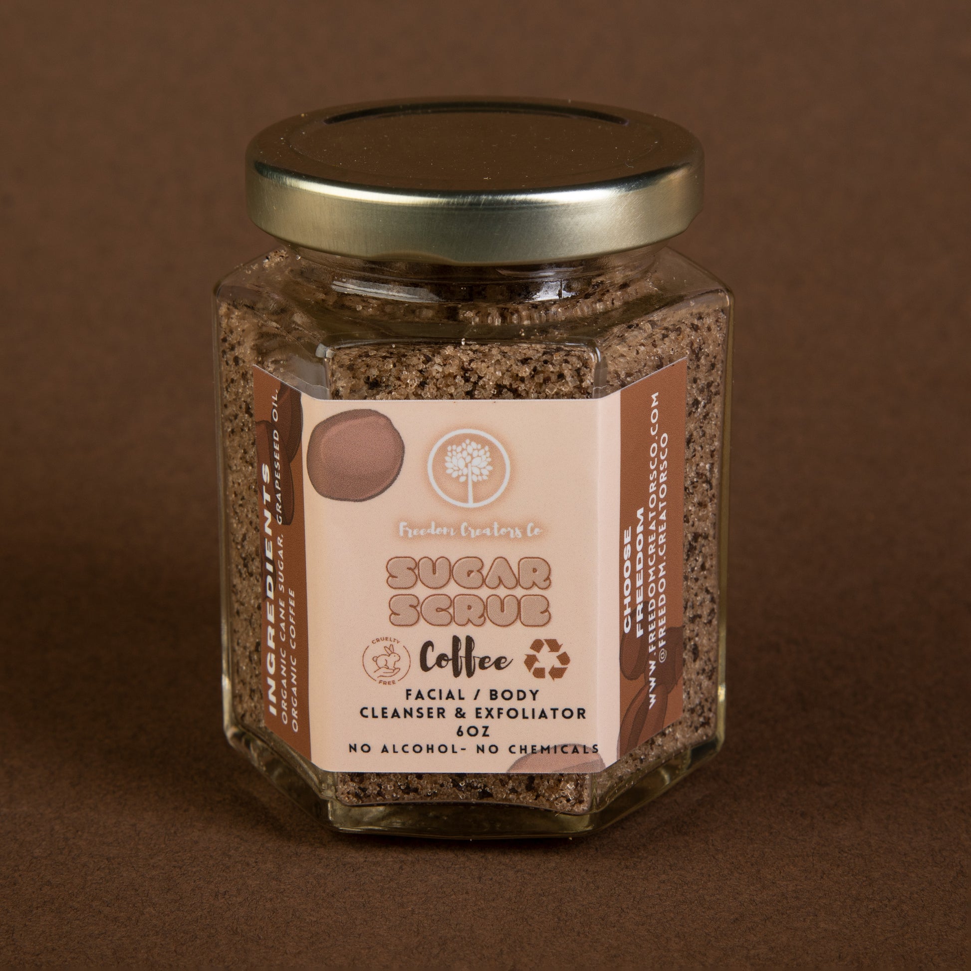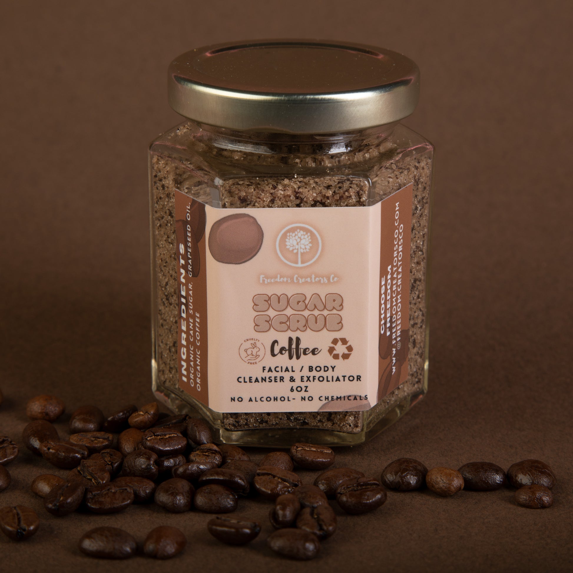 Coffee Sugar Scrub made with zero added chemicals and no harmful preservatives. Great for sensitive skin types and helps with eczema, dry skin and skin rejuvenation.