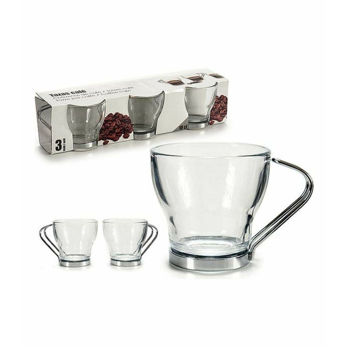 Piece Coffee Cup Set Silver Metal Transparent Glass 24 Units