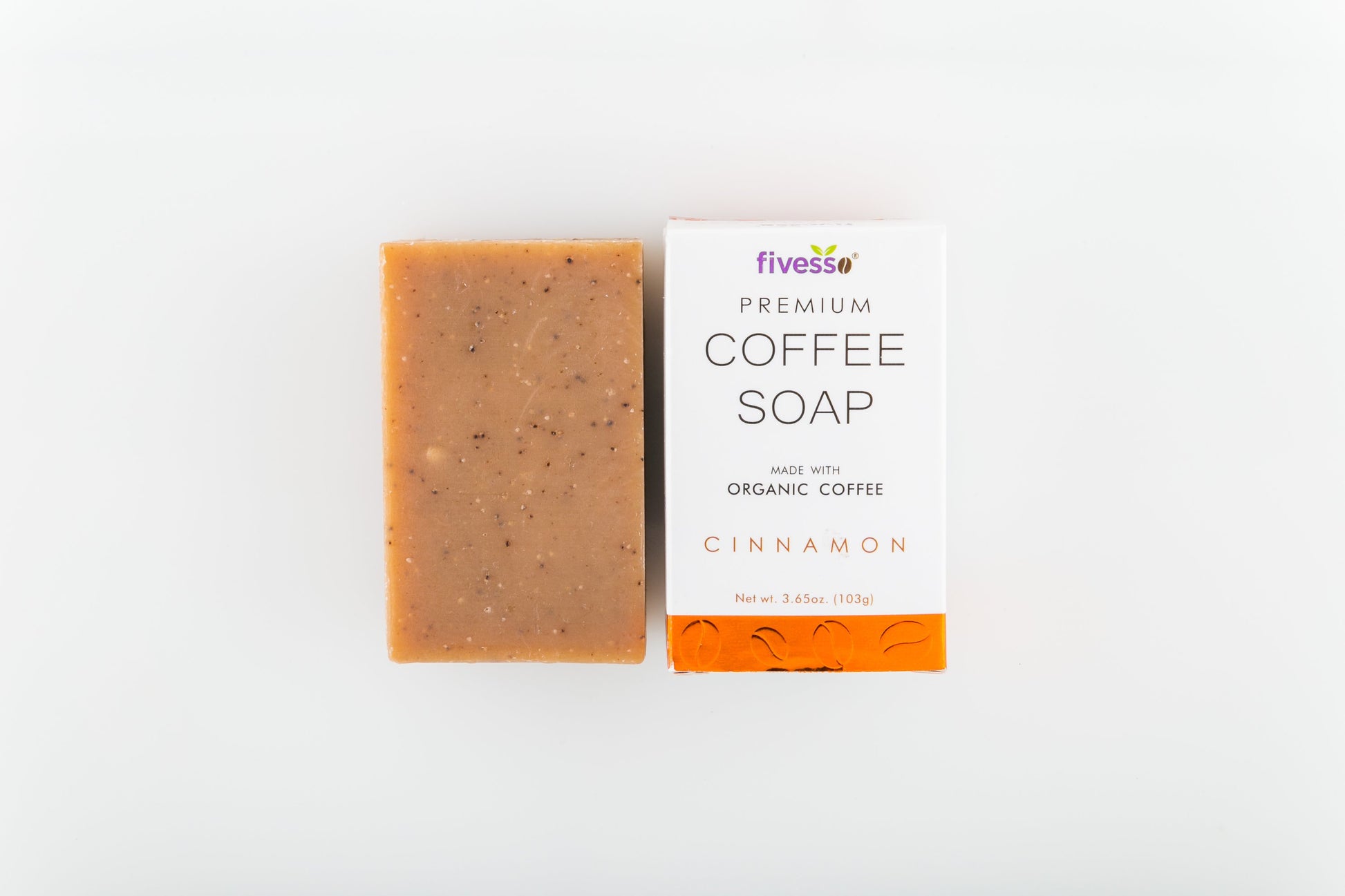 The Fivesso Cinnamon Coffee soap bars are all made with natural and organic ingredients. The organic soap bars are handcrafted in large batches and cured in wooden curing racks to rest for 6 to 8 weeks before being certified safe to use. We take proper care making sure that each soap bar reaches our premium standards before putting into the recycled Fivesso boxes so that each soap bar is personally inspected before packaging. All of our coffee soaps are handcrafted and packaged in the USA. Bar is 3.65oz.