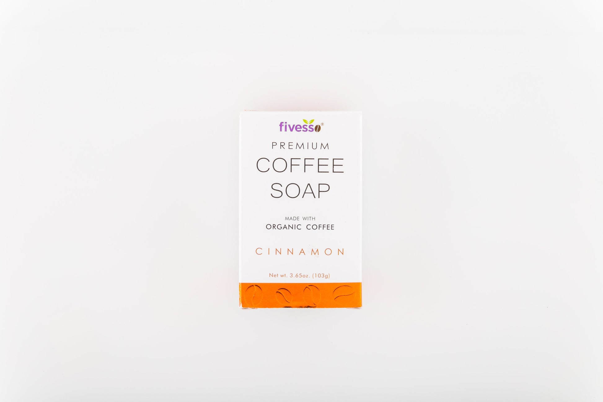The Fivesso Cinnamon Coffee Soap Bar is made with organic coffee and high quality organic ingredients. Fivesso Cinnamon Coffee Soap Bars are handcrafted in the USA and contains the highest quality ingredients. Our cinnamon coffee soaps are made with light roasted organic coffee grounds, organic olive oil, sustainable sourced organic palm oil, and organic essential oils to provide you with the highest quality experience of exfoliation- no other brand brings you the quality of Fivesso ingredients. Each bar has been certified organic by Oregon Tilth.