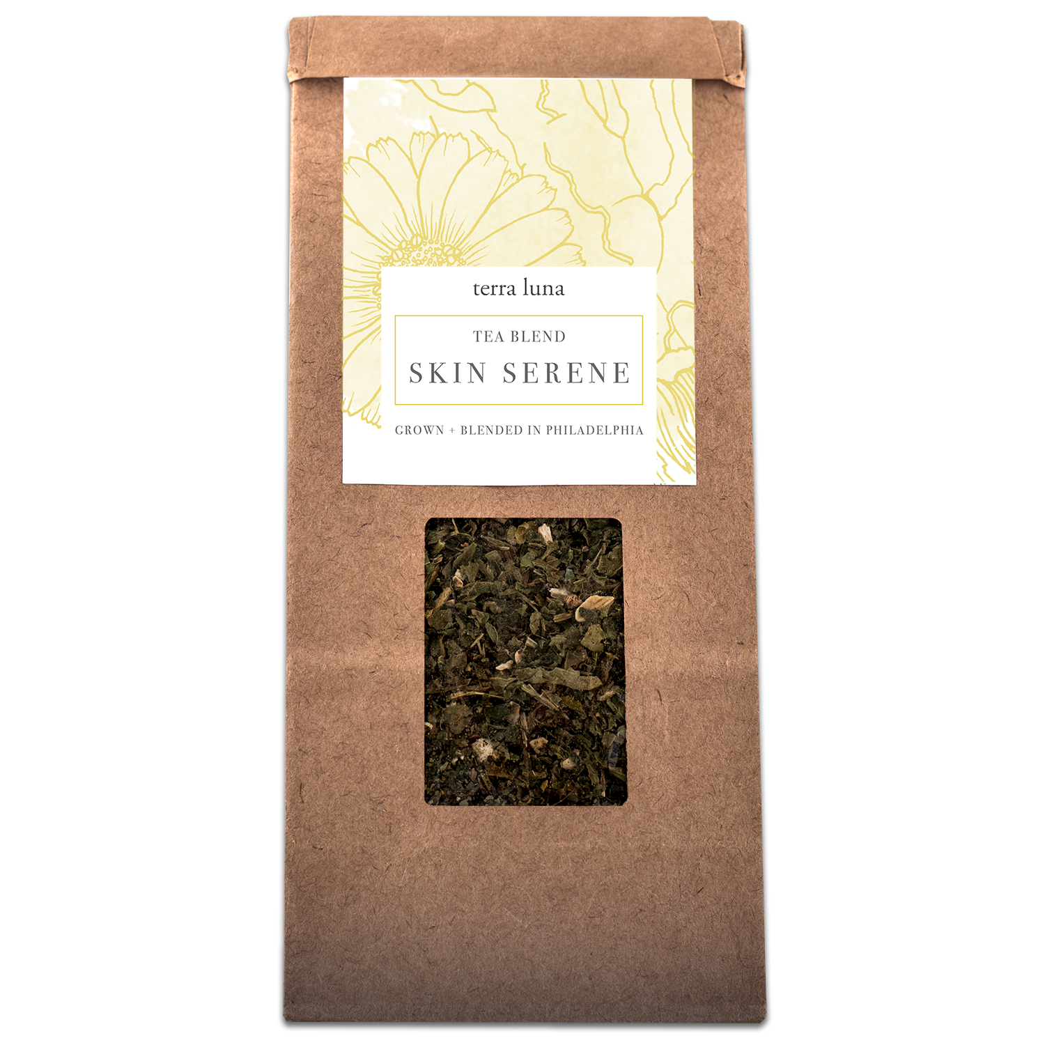 Loose herbal tea. 2.25oz dried herb in brown paper bag with clear window. Handmade apothecary item. Support your skin from the inside out with this blend of herbs herbs that support gut health and promote a healthy glow.