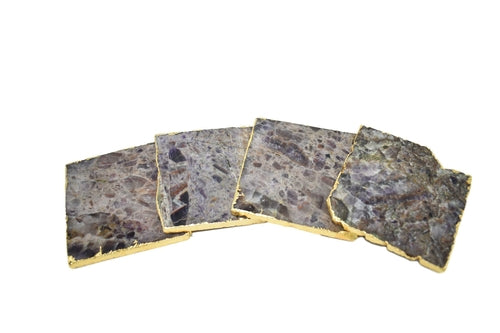 Protect your tabletops from condensation with the addition of elegant gemstone coasters perfect for parties or every day use. These 4x4 coasters can easily hold any sized glassware. Available in amethyst, rose quartz, or clear quartz, each coaster is trimmed in gold for an exquisite look.