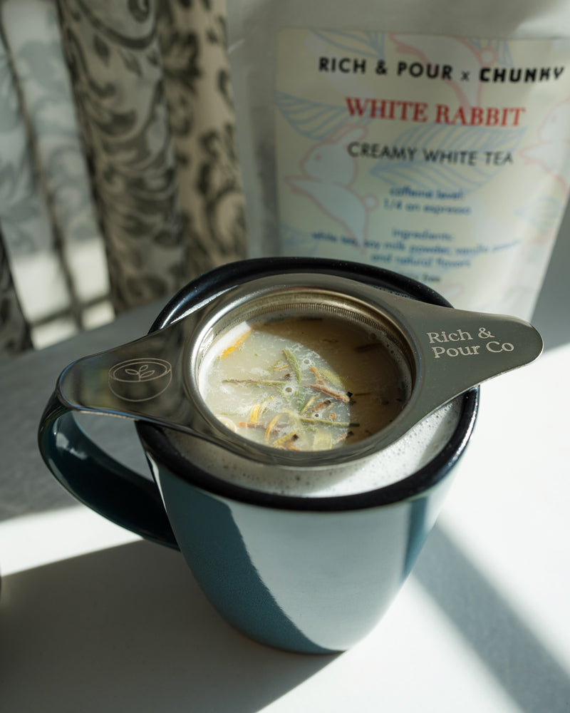 - Fill infuser with loose tea. Start with 1 teaspoon per 6oz, add more to taste.