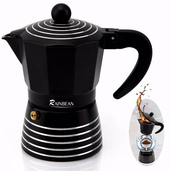 - 【BEST ESPRESSO OF BARISTA】: RAINBEAN stovetop espresso maker differs from instant, capsule or drip coffee and serves genuine tasters with the best enjoyment in aroma, flavor, aftertaste, body and clean up due to richer caffeine flavor extraction.